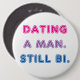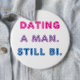 Bi-erasure pisses me off. We're still bi if we're with someone of the opposite gender, and sometimes you want it on a bag to remind people (especially those in the queer community) that we belong, period. So, I made this button.