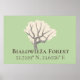 Latitude and longitude coordinates for the Białowieża Forest region, a UNESCO World Historical site and primeval forest located near Hajnówka, Poland. Modern tree embellishment with green background