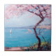 This design features a painting by the Romanian Post-Impressionist artist Kimon Loghi (1871–1952). It depicts a beauty beach scene in the fashionable French city of Biarritz, which is located on the Bay of Biscay, on the Atlantic coast of southwestern France. It is a luxurious seaside tourist destination known for its elegant lifestyle and glorious beaches. In the foreground of the image can be seen a large cherry blossom tree. There is yacht sailing on the water.