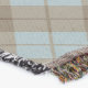 A quality printed throw has its advantages. This is a much finer weave throw than its loopier cousins, and though lighter, it is worth the investment for custom room accessorizing. The back is much prettier than the typical brown, and the fringe on the long sides very vivid, the selvage nicely done. Before photographing, I washed the throw in cold water, delicate, with a thicker woven throw the same size. On tumble dry low, this throw was dry in half the time as the other. This is a very practical quality if you use throws for furniture covers or to wrap up in frequently. The sleekness of the fabric makes it a great layer for accenting or protecting without the feeling of sitting on too much stuff. Perfect for napping or when you feel a light chill coming on. The color printing is beautiful and on this fabric, matched the design and color of my Photoshop image. This is an advantage for blending room fabrics and colors. The fringe on the short sides prints the colors from the design image and therefore varies from the side fringe. I streaked a white fractal line through the plaid pattern to give the illusion of weaving. This printed as crisp as an illusory thread, and put some white in the short side fringe, showing another advantage of print vs loomed- for artistic purposes, line lines, detail, and color integrity can be planned and preserved. My loomed throws have color limitations and more of a needlepoint texture. Print throws reproduce an exact image. The throw felt a little stiff straight out of the package, but this went away in the first delicate wash. Of course I searched the wash water for ink or bleeding and there was none.
