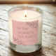 This charming and simple design features scripture from 1 John 4:19, "We love because he first loved us," in a simple gray font against a soft blush background with delicate line drawn florals. Show your love of your faith with this charming scented candle, add some charm to your home decor or give to a loved one to encourage them and show how much you care.