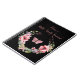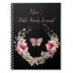 Our Bible Study Journal features a dramatic black background with a U-shaped wreath of pink flowers and greenery. The text reads, "Mom's Prayer Journal."