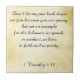 A religious token, this Bible verse "Be an example" ceramic tile features a gold parchment background with a scripture from 1 Timothy 4:12 written in black. "Don’t let anyone look down on you because you are young, but set an example for the believers in speech, in conduct, in love, in faith and in purity". Order yours today!