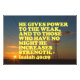 HE GIVES POWER TO THE WEAK, AND TO THOSE WHO HAVE NO MIGHT HE INCREASES STRENGTH. - Isaiah 40:29. - Matthew Poole's Commentary: He hath strength enough not only for himself, but for all, even the weakest of his creatures, whom he can easily strengthen to bear all their burdens, and to vanquish all their oppressors. Order your copy of the photo print with the beautiful image showing this Bible scripture today!