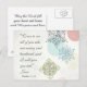 Inspirational quote postcard features Bible verse Matthew 11:28 words of Jesus, "Come to me all of you who are weary and burdened, and I will give you rest." It has a beautiful unique vintage snowflake flower design in shades of blue, gray, green and peach. The back greeting can be customized.*