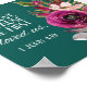 Decorative Bible quote with pink & fuchsia flowers on a dark green background and handwritten font.