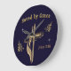 Great price for a very nice product. Arrived a day early - unheard of these days. The outside gold area has a little more orange tone to it than shown in the picture. Great packing so product can't get damaged. I used the same packing to forward the clock to my brother and sister-on-law for the 50th wedding anniversary. Printing was just as expected - lovely!