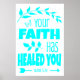 Your Faith Has Healed You, Poster, on Archival Heavyweight Paper (Matte) in turquoise on white, which exudes a sense of spiritual resonance.