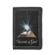 Bible with shining star and letters wallet with text words of God