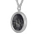 I chose gold plated so that the metal would not react with my skin oils and perspiration. But, I changed the necklace from the gold plated one to a sterling silver. My skin cells will tarnish the silver. But it will not look as bad if some portion of the gold plated necklace somehow became compromised. Zazzle did a find job turning the picture into a pendant for me. As you can see, the colors and the printing of the final product, match the preview. The picture I took is not very clear. But I am pleased with the product I received.