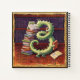 A green bookworm in its library, with a plethora of beloved books, both on the shelves & piled on the floor, with a hidden acrostic message for bibliophiles. Twisted with book love, the fantasy creature takes the form of a letter "B." This is a reproduction of an original acrylic painting by Leah Palmer Preiss, created for A.Word.A.Day in 2017.