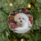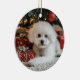 This adorable Christmas ornament, featuring a Bichon Frise lying under a Christmas tree, is a wonderful gift for any Bichon lover.