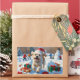 A heartwarming holiday illustration featuring a cheerful dog playing in the snow, wearing a Santa hat and surrounded by colorful gift boxes. In the background, children build a snowman beside a snow-covered Christmas tree, creating a joyful winter wonderland. Perfect for spreading holiday cheer and capturing the magic of Christmas.
