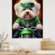 Bichon Frisé Dog Driving Bike St. Patrick's Day Poster