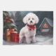 Bichon Frise Dog in Snow Christmas Kitchen Towel