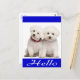 Aww...who can resist the cute face of a Bichon Frise puppy dog? This charming postcard features a portrait of two Bichon Frise puppies with a royal blue border highlighting a Hello greeting. These sweet Bichon puppies are ready to help you send greetings to family and friends.
