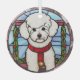 Bichon Frise Stained Glass Christmas Glass Ornament