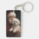 Bichon Frise with Santa Claus Festive Christmas Keychain