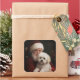 Bichon Frise with Santa Claus Festive Christmas Square Sticker