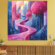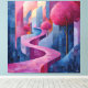 Transform your walls with this mesmerizing monochromatic pink and blue abstract landscape. Featuring a winding pathway surrounded by bold geometric structures and vibrant pink trees, this artwork blends natural and urban elements in a harmonious palette. The dynamic composition and soft interplay of light and shadow create depth and tranquility, making it a perfect centerpiece for modern, minimalist, or contemporary interiors. A stunning choice for art lovers seeking a unique and vibrant design.