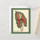A fine art postcard from Curtis’s Botanical Magazine showcases a digitally enhanced illustration of a vivid red and green Caladium leaf. This piece presents a carefully refined artwork from the world’s longest-running botanical publication.