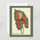 A fine art postcard from Curtis Botanical Magazine. An illustration of a brilliant red and green leaf from a Caladium plant which has been digitally enhanced.
