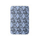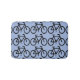 This bath mat features an abstract pattern of a black bicycle on a blue background. Easily customize the blue background to the color that will best suit your decor.