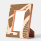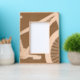 This beautifully crafted etched wood picture frame features a unique design that seamlessly blends geometric abstraction with a touch of whimsy. At first glance, the intricate pattern appears to be a series of angular shapes and lines, but a closer look reveals that these elements are actually parts of a bicycle, cleverly integrated into the woodwork. This artistic approach gives the frame a dynamic and fluid feel, reminiscent of the motion of cycling.
