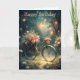 A bicycle with a flower basket on the front and more flowers at the back. Suitable for a birthday card, anniversary card etc for anyone. Feel free to change text