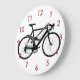 This bicycle clock features a simple pop-art style image of a black bicycle against a solid white background. Bike wall clocks make great gifts for cyclists.