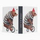 This design features a watercolor illustration of a bear on a bicycle wearing a striped sweater and red hat.