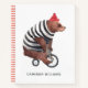 This design features a watercolor illustration of a bear on a bicycle wearing a striped sweater and red hat.