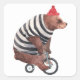 This design features a watercolor illustration of a bear on a bicycle wearing a striped sweater and red hat.