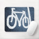 A photo of a bicycle painted on a road. In cool toned black and white.