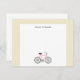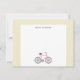 A flat notecard featuring an illustration of a melon pink bicycle at bottom. Personalize with your name at top. Look for matching items at Jill's Paperie.
