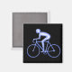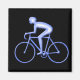 A lone bicyclist races through this design in a slick neon-looking outfit. Mountain bike, ten-speed, two-wheeler, whatever it is you can be sure it is fast.
