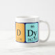 Biddy spelled out as B I D Dy (Boron Iodine Deuterium Dysprosium) on a mug for the scientist in you.