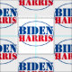 Show your support for the Democratic presidential ticket with this patriotic pattern that features Biden / Harris text in blue and red with oval outline on white background