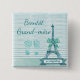 Grand-mère Baby Shower Button grandma to be, with teal Eiffel Tower background with little baby footprints and bow