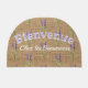 This rustic doormat features some vintage floral pattern against burlap look background . It comes with the curved text design " Bienvenue " = French Welcome . Easy to customize it now with your family's name .Half Circle Moon shaped .