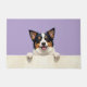The soft lilac purple background adds a gentle and stylish touch, perfect for modern home decor. With extra space at the top and bottom, this design is ideal for personalization—add names, welcome messages, or custom text to create a unique dog-themed doormat or thoughtful gift.