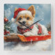 Biewer Terrier Dog in Sledge Let it Snow Christmas Square Wall Clock