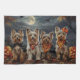 Unleash the spooky spirit with this eerie Halloween design featuring a pack of dogs under a dark, moonlit sky, surrounded by flying bats and glowing pumpkins. Perfect for those who love a touch of frightful fun with their furry friends!