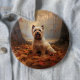 Biewer Terrier in Autumn Leaves Fall Inspire Button