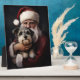 Biewer Terrier With Santa Claus Festive Christmas Plaque