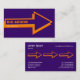 A business card template with a big arrow motife with company details on the front and name and contact details on the back. The back of the card is decorated with three smaller versions of the main arrow motif.