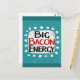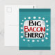 "Big Bacon Energy" is a cute text design in blue with black and red text, along with a white accent shape and white textured whimsical dots surrounding it.