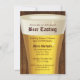 A big glass of cold beer sits on a wooden table awaiting to invite your guests to a beer tasting event or other celebration where beer is the drink of choice. The reverse shows the wooden background with the beer already consumed, but optional information can be added here. Available with matching products.