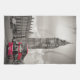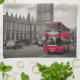 A red double decker bus passing in front of the Big Ben clocktower and parliament building in London England.