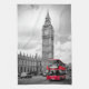 A red double decker bus passing in front of the Big Ben clocktower in London England.